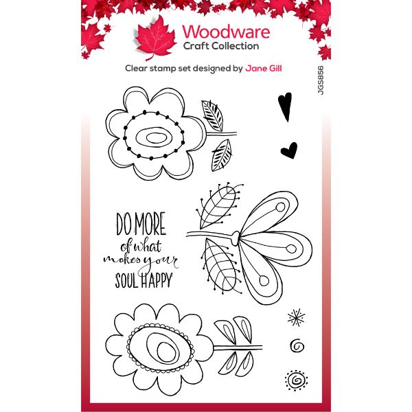 Woodware Clear -Singles Petal Doodles Happy Soul – 4 in x 6 in Stamp Set
