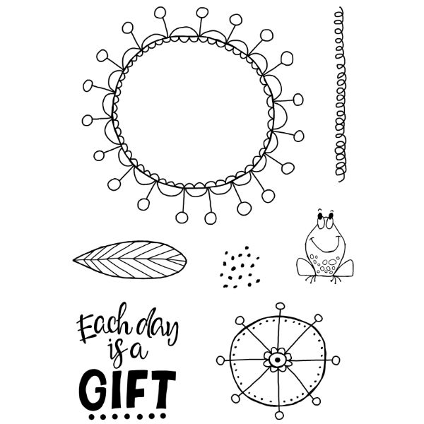Woodware Clear Singles – Petal Doodles It’s A Gift – 4 in x 6 in Stamp Set