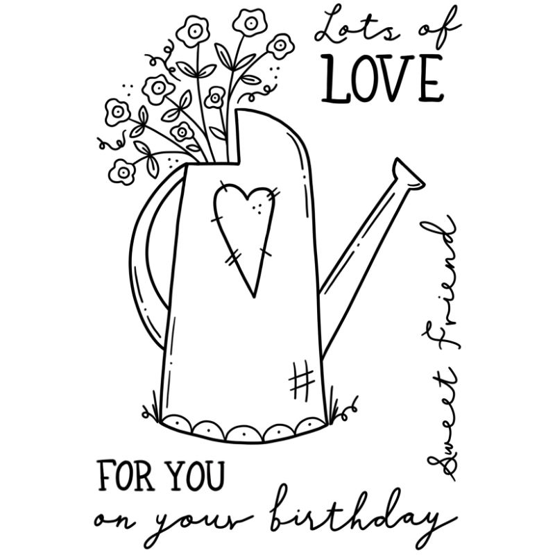 Sam’s strong drawing style works great for this flower filled watering can. This set can be used for cards, journals, home décor and so much more. The fun words will be great for friendship cards. These clear stamps are ideal for adding images to any project. Ready to mount on an acrylic block the stamps can be used with ink pads, paint, or used with pigment and embossing powder. They are suitable for paper fabric, or any other surface depending on the ink choice. High quality Polymer stamps are designed and made in the UK. A6 size five stamp clear polymer set. Made in UK