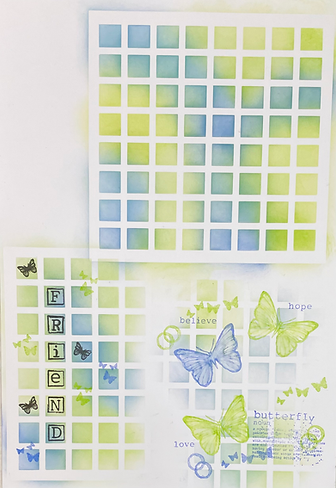 Stencil is made from 250 micron Mylar and has a grid of squares, 8 across by 8 down, which co-ordinate perfectly with Hazel’s Square Alphabet Medley Stamp Set DS-HE-1041. Â