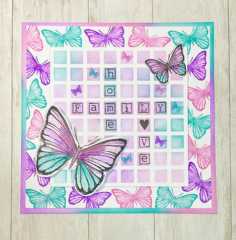 Use as a stencil to create fabulous backgrounds that work with all products in Hazel’s Backgrounds & Textures Collection or can be used as an alignment tool for positioning and stamp individual letters through the stencil to build up your own sentiments, personalise your cards, etc.