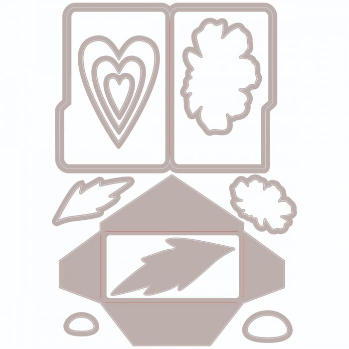 This Thinlits® Set by Eileen Hull® is perfect for adding embellishments to not only Eileen’s trademark journal dies, but to any creative project! Featuring an assortment of hearts and flowers along with pockets and envelopes which fit perfectly into Eileen’s Scoreboards XL Die – Field Notes & Specimen (666475), to keep treasured memories safe.