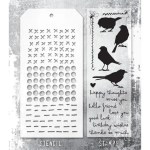 Tim Holtz Mixed Media Set Includes clear photopolymer stamps and a custom layering stencil designed to add texture and imagery to your creativity. Use with your favorite inks, paints, sprays and embossing pastes.