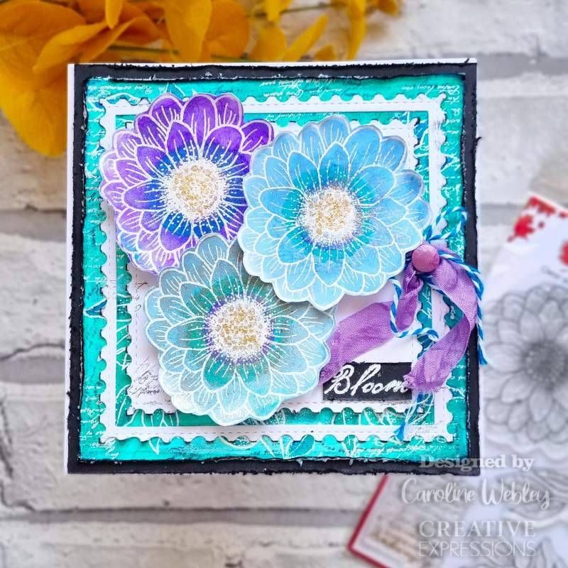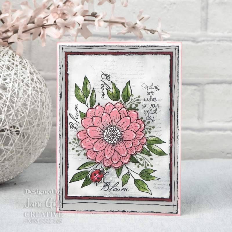 This clear floral stamp design from Jane Gill can be used to create a beautiful card front and is calling out for colour and layering. The flowers can be coloured and accessorised to suit your project and would look fabulous stamped on various surfaces including fabric. Complete with words to finish off cards. The set also has a great selection of additional elements to finish off your projects. Ready to mount on an acrylic block the stamps can be used with ink pads, paint, or used with pigment and embossing powder. They are suitable for paper fabric, or any other surface depending on the ink choice. High quality polymer stamps made in the UK. Set size 10 x 15 cm (4 x 6 inches). 6 stamp set.