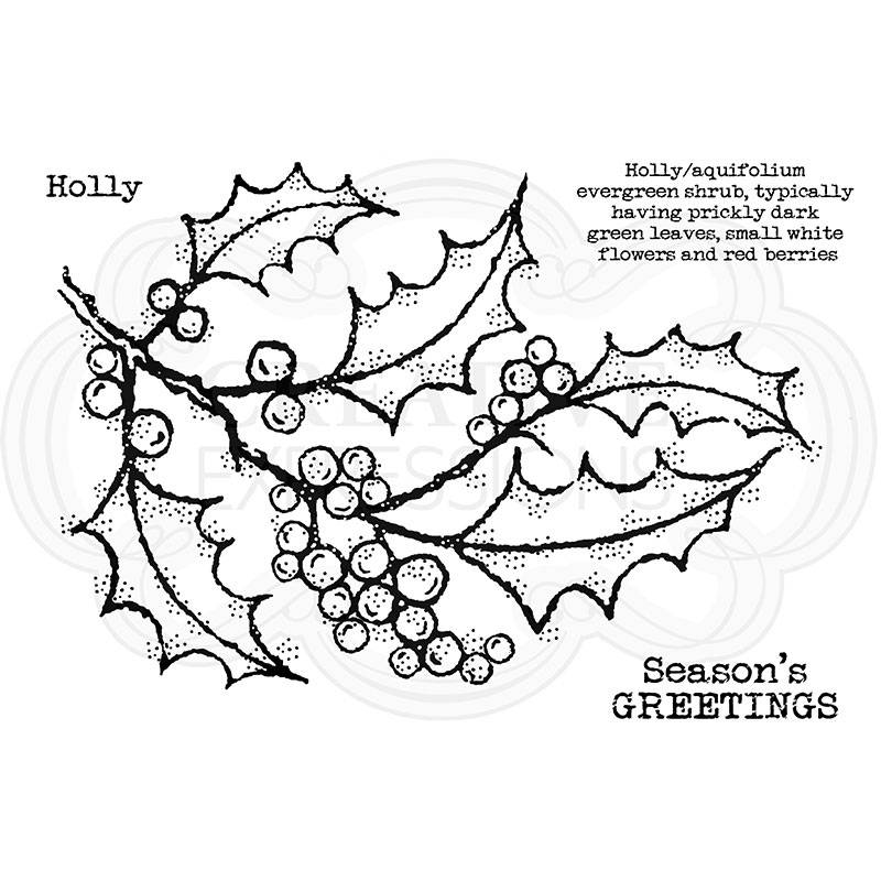 This large holly spray has a very contemporary look and is perfect for making cards but will look great just stamped on a scrapbook page. This image is just calling out to be coloured with your favourite medium or layered or even paper pieced. Designed by Francoise Read. These stamps would be perfect for cards and scrapbook pages as well as mixed media or Christmas d?cor projects. Ready to mount on an acrylic block the stamps can be used with ink pads, paint, or used with pigment ink and embossing powder. They are suitable for use on paper, fabric, or any other surface depending on the ink choice. Clean your stamps with a wipe, damp cloth or under warm running water depending on the medium you use.? Designed and made in the United Kingdom. 15.25 x 10.15 cm (6 x 4-inch) ? four stamp set.