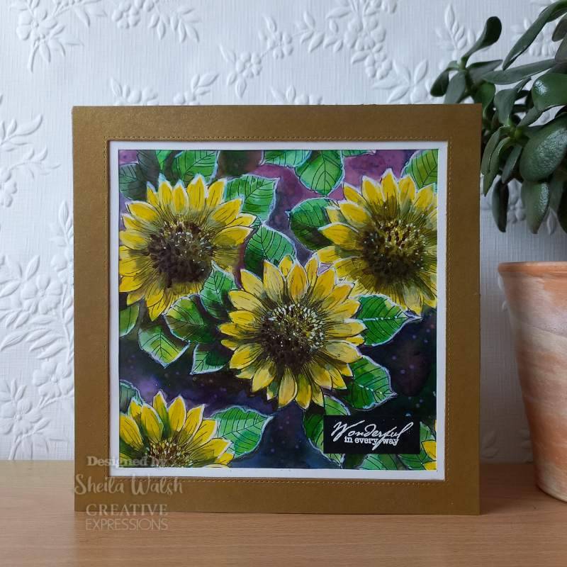 This clear floral stamp design from Jane Gill can be used to create a beautiful card front and they are calling out for colour and layering. The Sunflower is waiting to be finished off by you. The image can be coloured and accessorised to suit your project and would look fabulous stamped on various surfaces including fabric. Complete with words to finish off cards. Ready to mount on an acrylic block the stamps can be used with ink pads, paint, or used with pigment and embossing powder. They are suitable for paper fabric, or any other surface depending on the ink choice. High quality polymer stamps made in the UK. Set size 10 x 15 cm (4 x 6 inches). 2 stamp set.